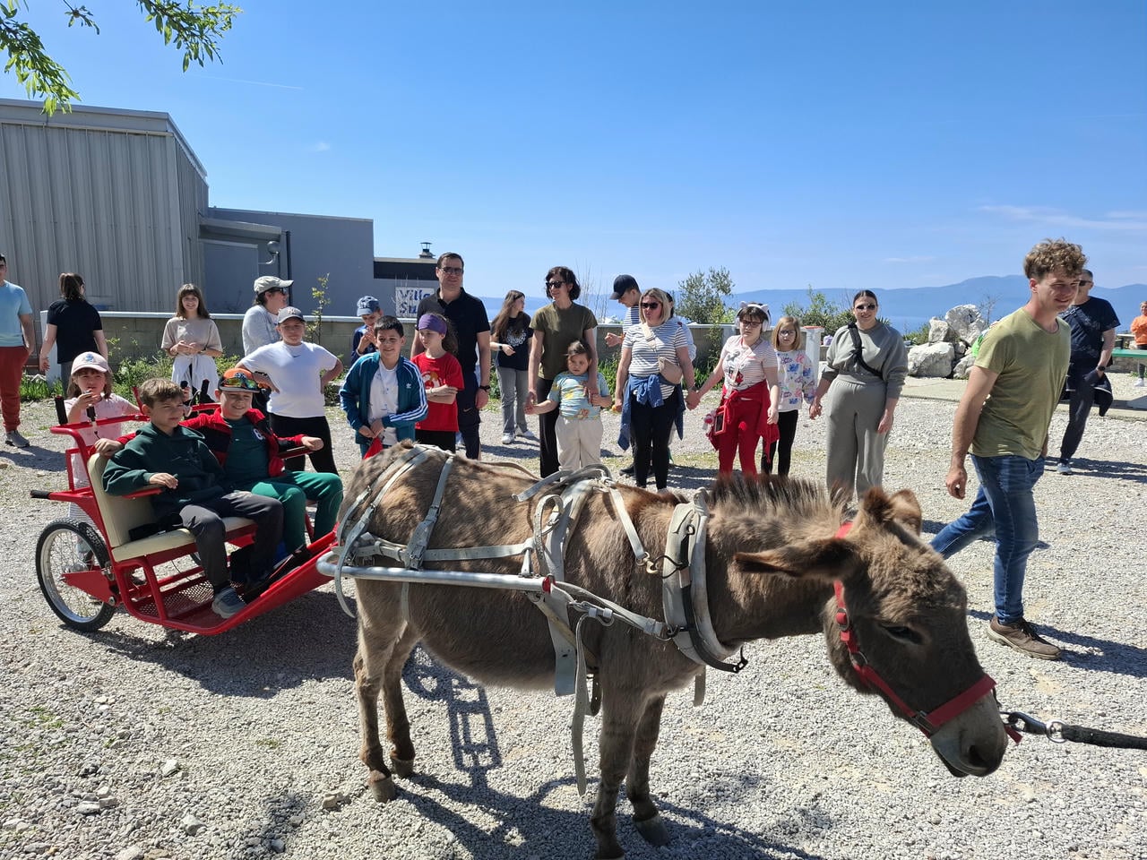 Roditelji i djeca, članovi Radionice/igraonice razvojne podrške djeci „Kolibrići“, zajedno s članovima XV. saziva Dječjeg gradskog vijeća Grada Opatije i predstavnicima Društva „Naša djeca“ Opatija, 11. travnja 2026. godine posjetili su Farmu magaraca u Šmriki, gdje su sudjelovali u edukativnom i iskustvenom programu u organizaciji OPG-a Lucić.