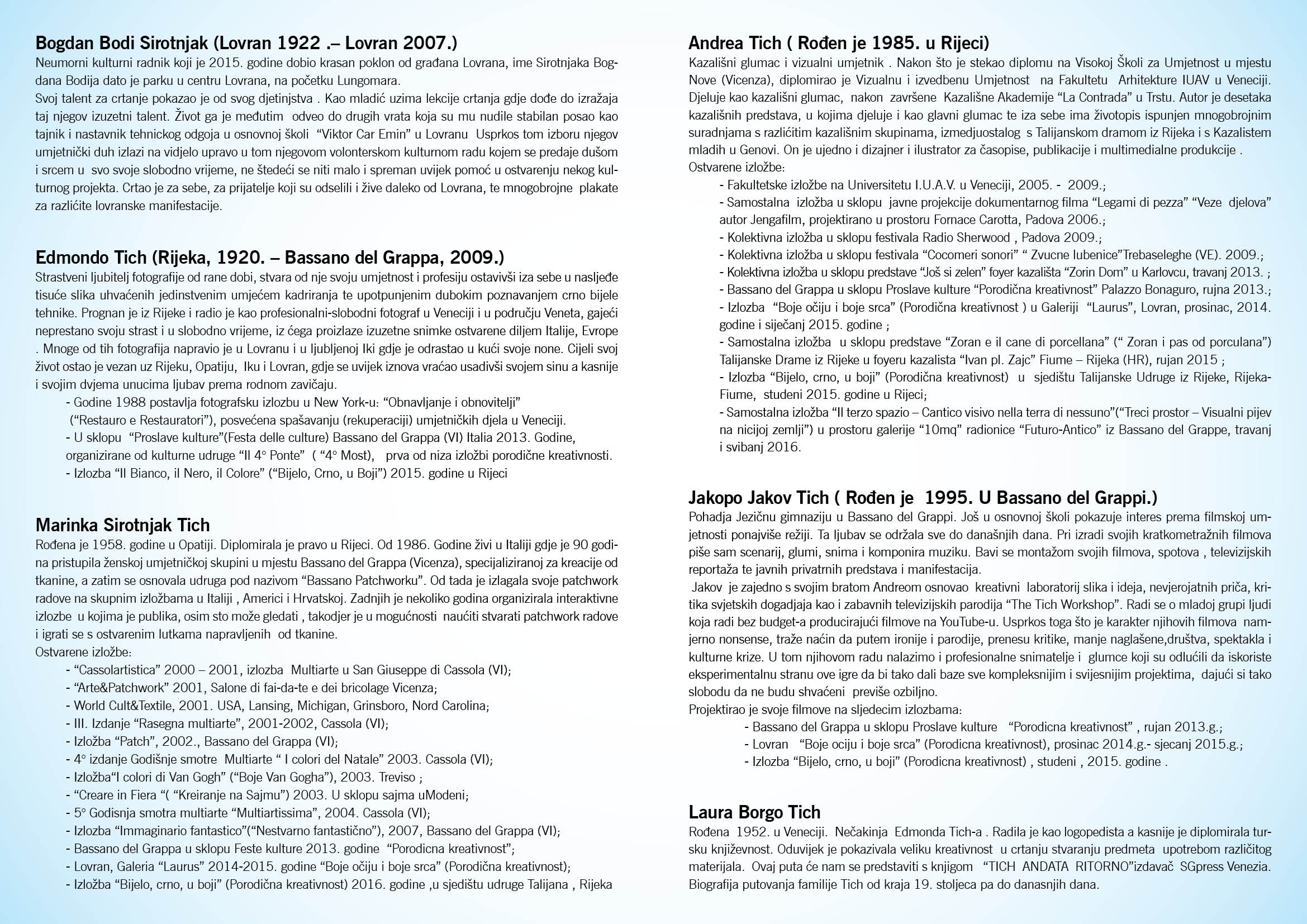 Otvorenje izložbe “BOJE OČIJU I BOJE SRCA 2” koja objedinjuje porodičnu kreativnost obitelji Sirotnjak i Tich održat će se 21. kolovoza 2016. s početkom u 18,00 sati.